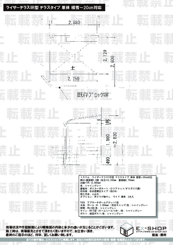 サイズ | 屋根幅 2,750mm 出幅 2,085mm |