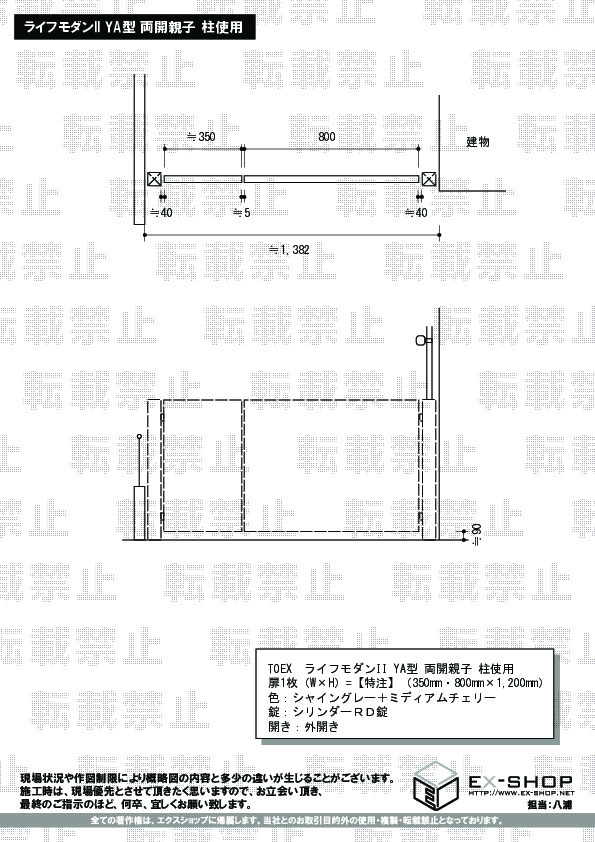 ナチュラルな雰囲気の中に、シャイングレーとミディアムチェリーの二色使いがキラリと光ります、モダンな門扉でございますね。お庭の植栽ともマッチして、違和感なく納まりましたこと、大変嬉しく存じます。これからも、お客様のご期待を裏切らないよう精進して参りますので、また機会がございましたら、是非エクスショップをご利用頂けますよう、宜しくお願い致します。
