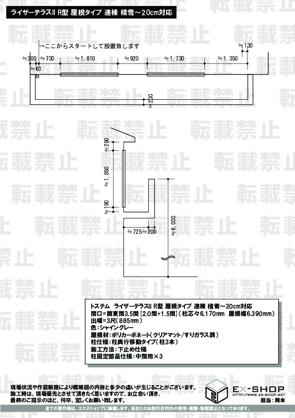 | サイズ | 屋根幅 6,390mm 出幅 885mm |