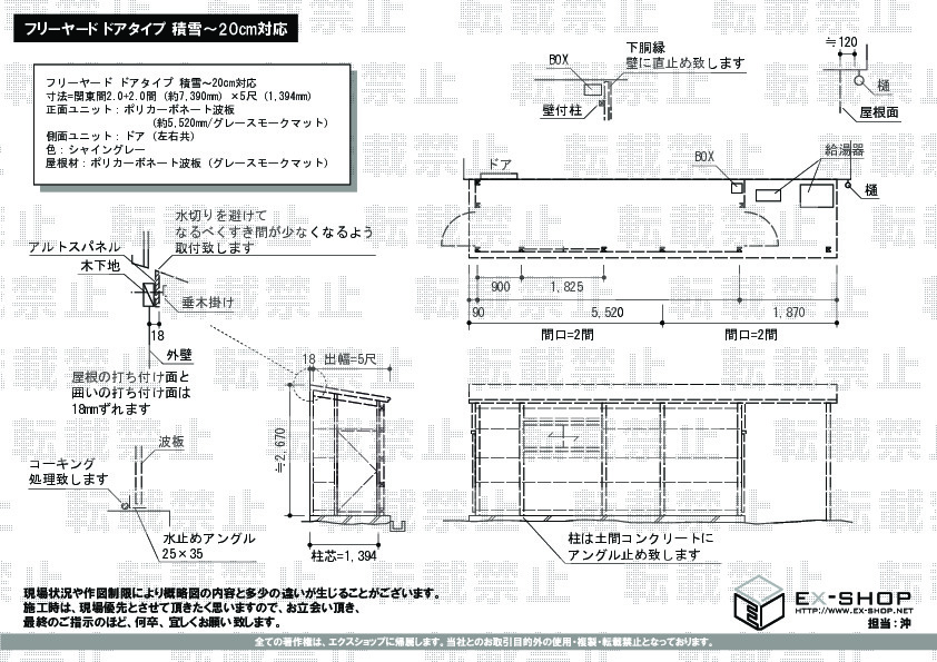 サイズ | 間口 7,390mm 出幅 1,394mm |