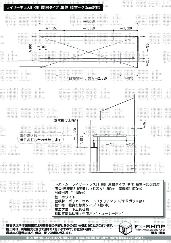 サイズ | 屋根幅 4,570mm 出幅 1,185mm |