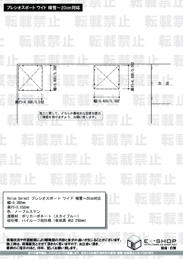 この度は、プレシオスポートワイドの施工ご依頼を頂き誠に有り難うございます。一流メーカーと、弊社のコラボ商品でございますプレシオスポートは、シンプルなデザインでお手頃な価格ではございますが、機能性・耐久性に優れております。お気に召して頂き、永くご愛用頂けましたら幸いでございます。ご満足頂けましたこと、施工士も担当スタッフも大変喜んでおります。今後も、お客様にご満足頂ける様、日々精進して参りますのでまた機会がございましたら是非エクスショップをご利用下さいます様、宜しくお願い致します。