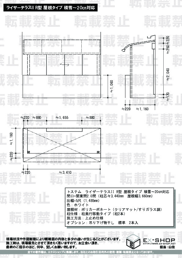 | サイズ | 屋根幅 3,660mm 出幅 1,485mm |