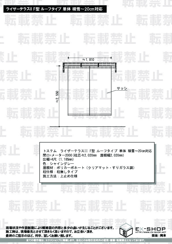 サイズ | 屋根幅 2,020mm 出幅 1,185mm |