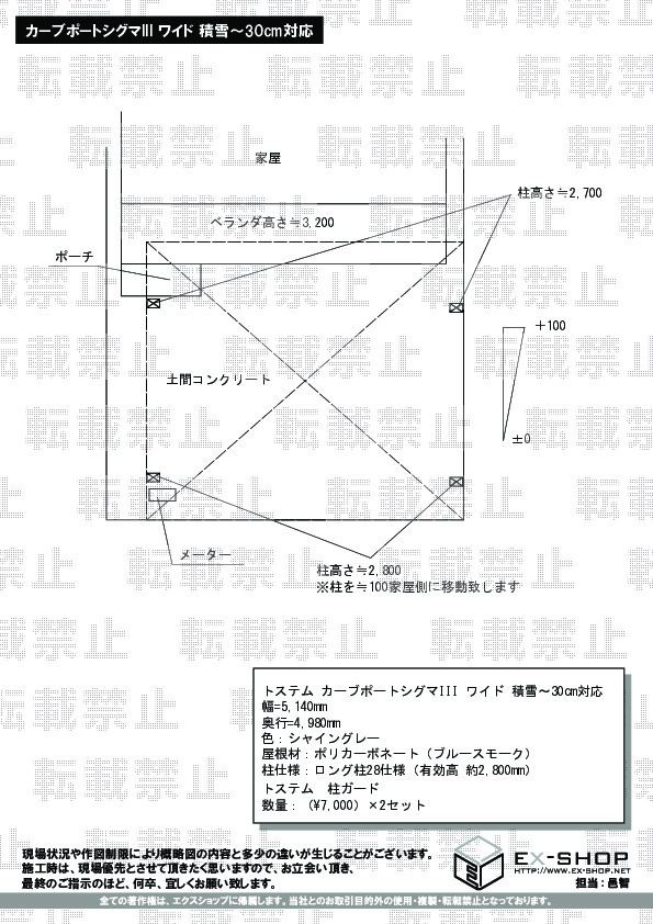| 屋根高等 | ロング柱28仕様(有効高 約2,800mm) |