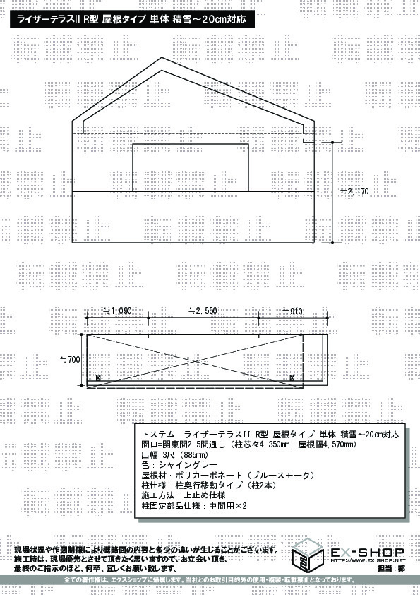 サイズ | 屋根幅 4,570mm 出幅 885mm |