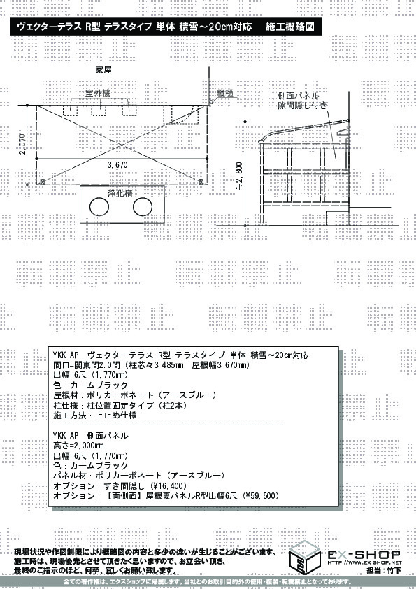 サイズ | 屋根幅 3,670mm 出幅 1,770mm |