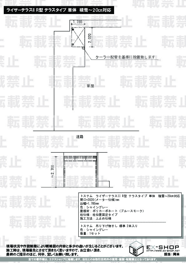 | サイズ | 屋根幅 2,020mm 出幅 1,785mm |