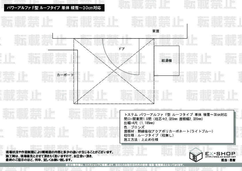| サイズ | 屋根幅 2,320mm 出幅 1,185mm |