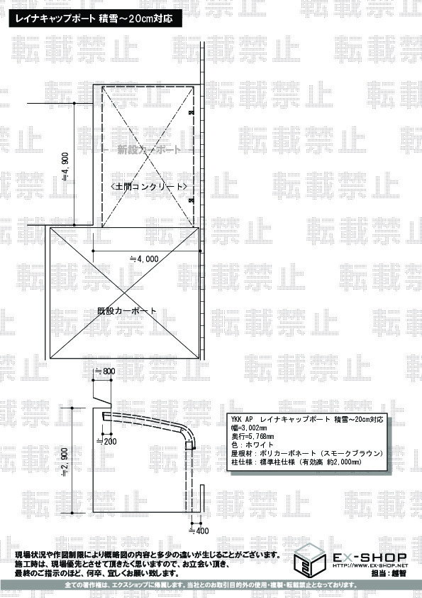 | 屋根高等 | 標準柱仕様(有効高 約2,000mm) |