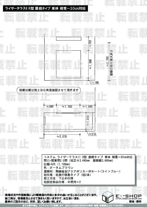 | サイズ | 屋根幅 3,660mm 出幅 1,185mm |