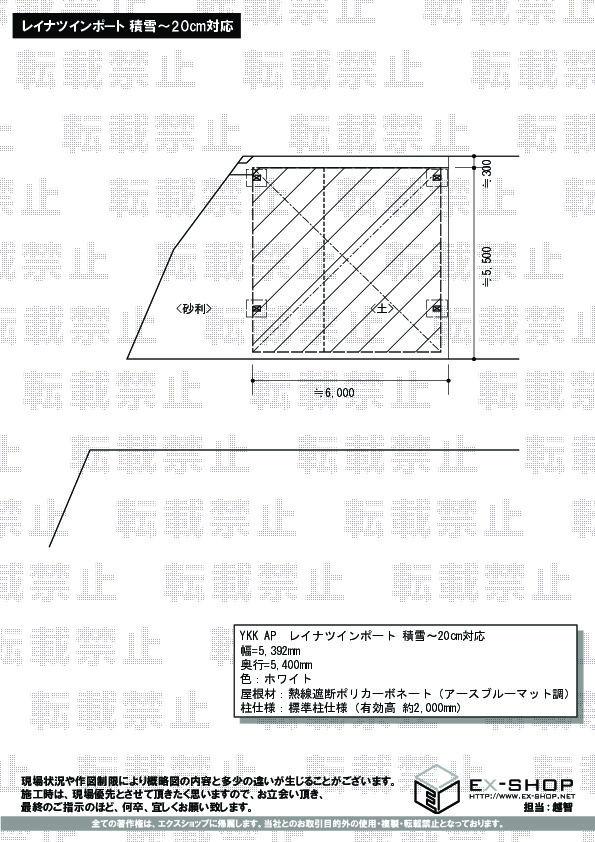 | 屋根高等 | 標準柱仕様(有効高 約2,000mm) |