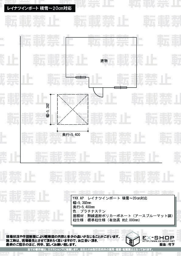 屋根高等 | 標準柱仕様(有効高 約2,000mm) |