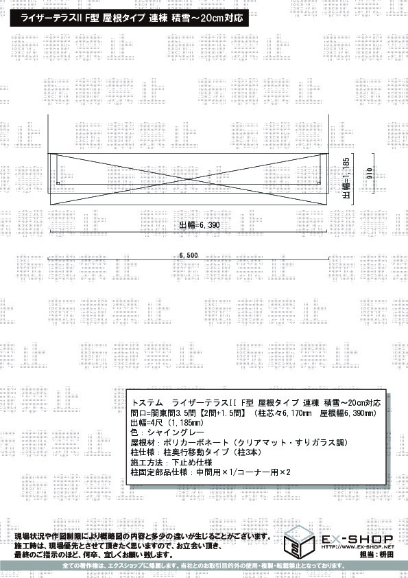 | サイズ | 屋根幅 6,390mm 出幅 1,185mm |