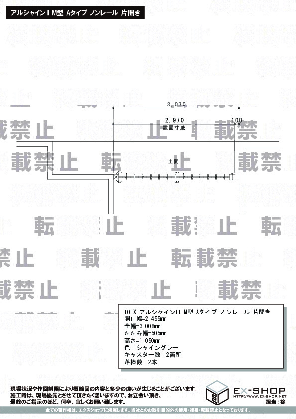 カラー:ブロンズ 規格幅:3020 (mm) 規格高:1050 (mm)
