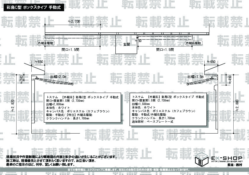 | サイズ | 間口 2,730mm 出幅 2,000mm |