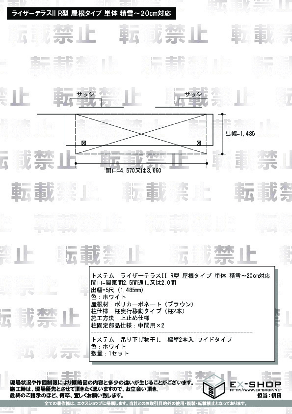 | サイズ | 屋根幅 4,570mm 出幅 1,485mm |