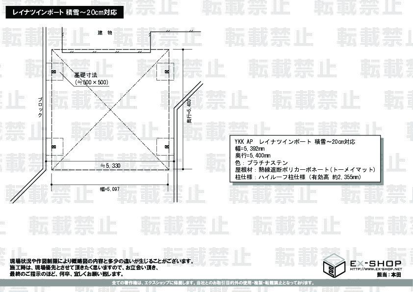 『地域密着あんしん施工』にて、レイナツインポートの施工をご依頼頂き、お褒めのお言葉を頂きましたこと、誠に光栄に存じます。二台のお車をゆったりと駐車して頂けますワイドタイプのカーポートでございますが、屋根の位置が高く、圧迫感のないお仕上がりでございますね。今後も絶えず企業努力を続け、更にお客様にご満足頂けるサービスを目指すよう、努めて参ります。また機会がございましたら、是非エクスショップにご用命くださいますよう、宜しくお願い致します。
