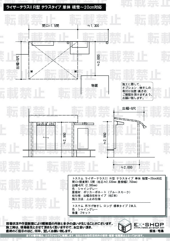サイズ | 屋根幅 2,750mm 出幅 2,385mm |