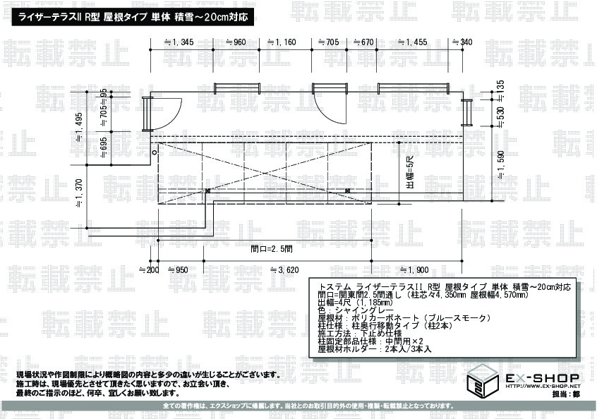 サイズ | 屋根幅 4,570mm 出幅 1,185mm |