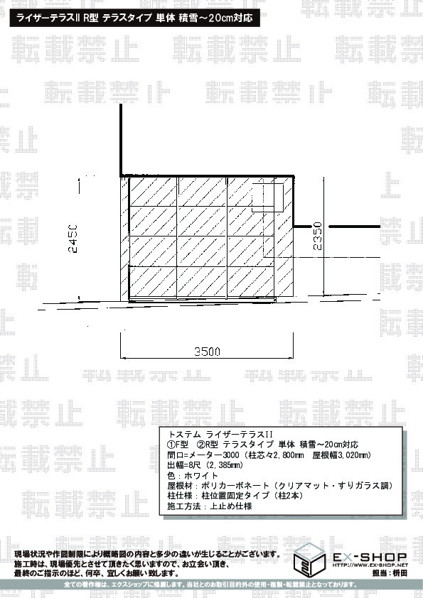 サイズ | 屋根幅 3,020mm 出幅 2,385mm |