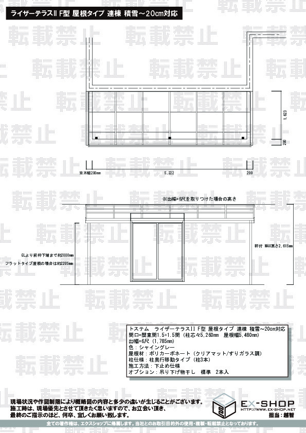 | サイズ | 屋根幅 5,480mm 出幅 1,785mm |