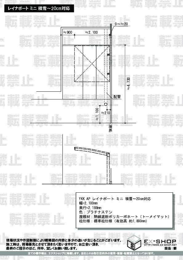屋根高等 | 標準柱仕様(有効高 約1,800mm) |