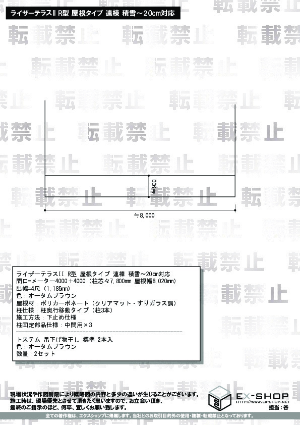 サイズ | 屋根幅 8,020mm 出幅 1,185mm |