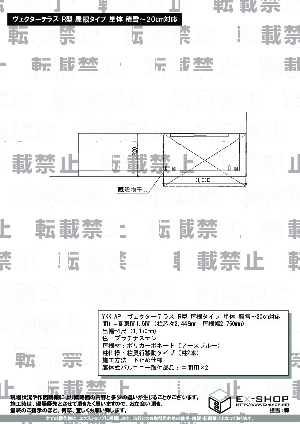 | サイズ | 屋根幅 3,030mm 出幅 1,170mm |