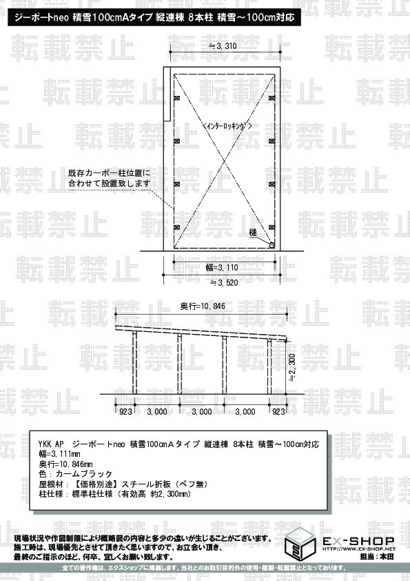 この度は ジーポートneo 積雪100cmAタイプ 縦連棟 8本柱 の施工をご依頼頂き、誠に有り難うございました。インターネット販売店と致しましては、日々、メールやお電話にて、お客様にご満足頂ける対応を求め、試行錯誤を繰り返しておりますので、このような温かいお言葉は何よりの励みとなっております。カームブラックのカーポートがご自宅の駐車スペースに綺麗に納まり、重厚感のある素敵なお仕上がりでございますね。積雪に100cmまで対応しておりますので、雪の日も安心してお過ごし頂けることと存じます。これからも、快適なお住まいづくりのパートナーとして、エクスショップをご利用頂けますよう、宜しくお願い致します。