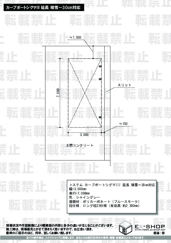 サイズ | 幅 3,000mm 奥行 7,098mm |