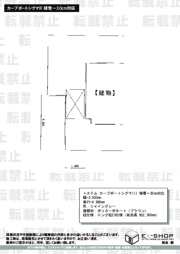 | サイズ | 幅 3,000mm 奥行 4,980mm |