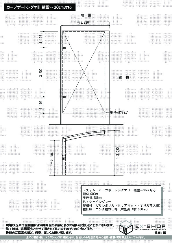 | 屋根高等 | ロング柱23仕様(有効高 約2,300mm) |