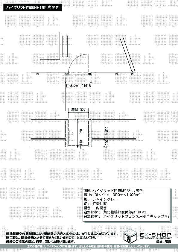 ハイグリッド門扉NF1型 片開き