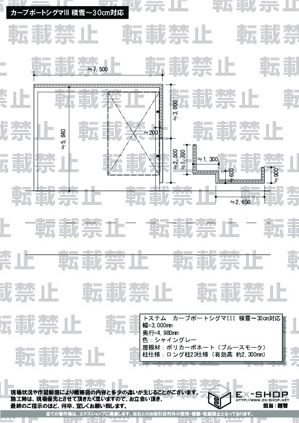 | サイズ | 幅 3,000mm 奥行 4,980mm |