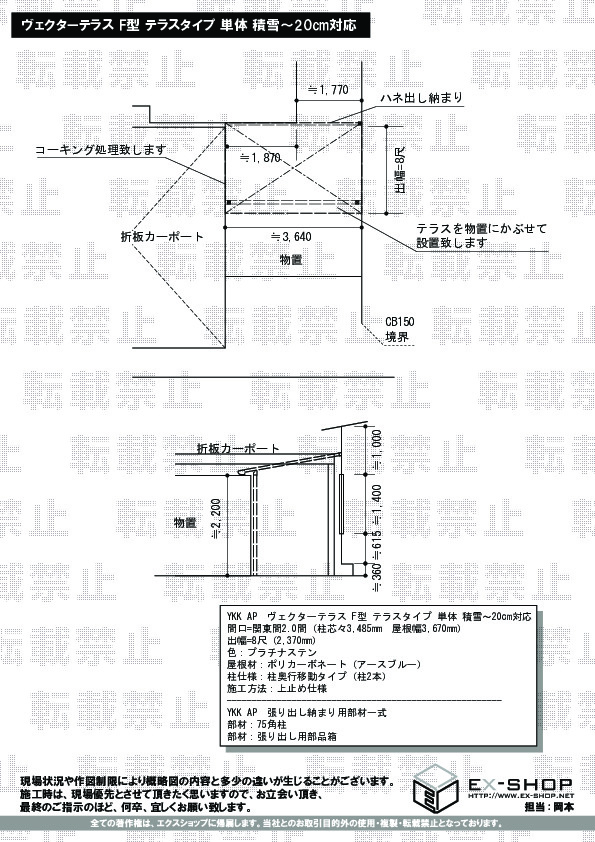 サイズ | 屋根幅 3,670mm 出幅 2,370mm |