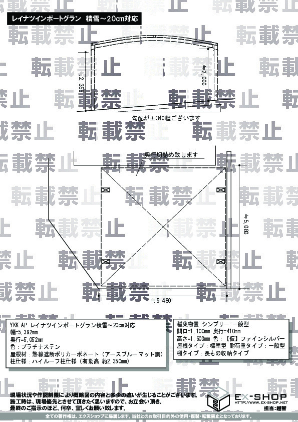 屋根高等 | ハイルーフ柱仕様(有効高 約2,350mm) |