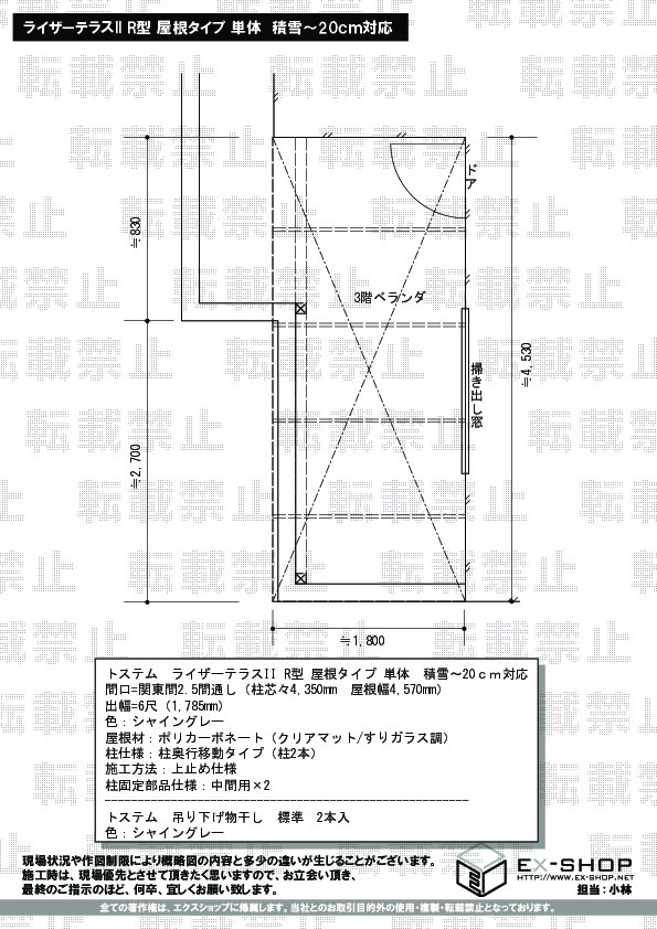 | サイズ | 屋根幅 4,570mm 出幅 1,785mm |