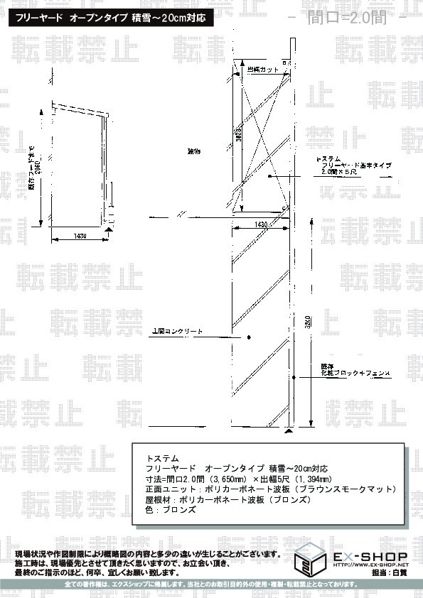 | サイズ | 間口 3,650mm 出幅 1,394mm |