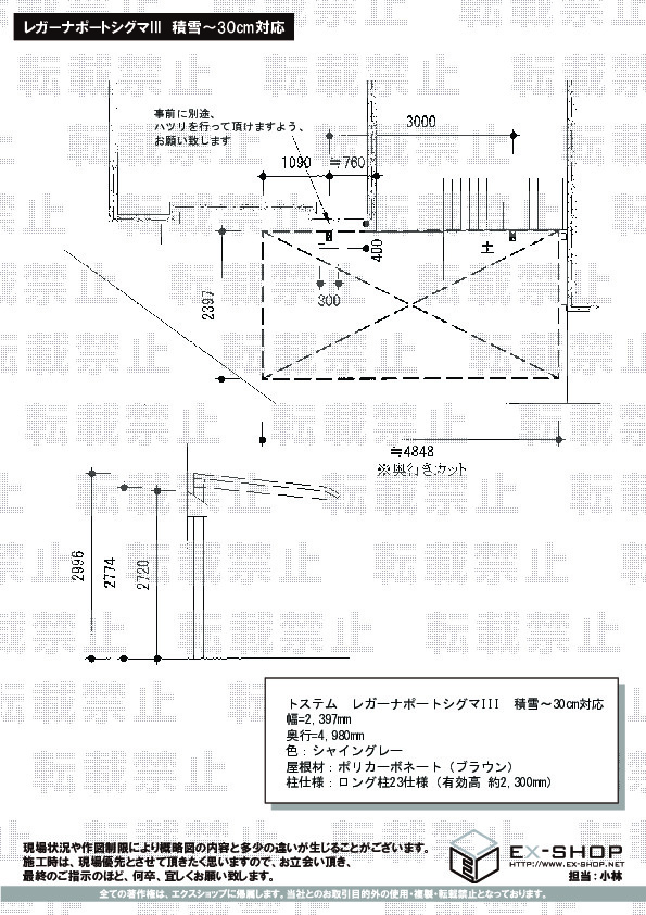 | 屋根高等 | ロング柱23仕様(有効高 約2,300mm) |