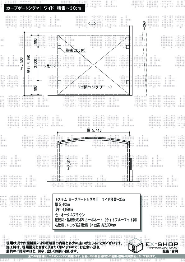 屋根高等 | ロング柱23仕様(有効高 約2,300mm) |