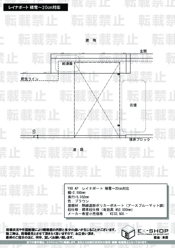 外構を調べていてYouTubeを良く見ていましたがお勧めがエクスショップだったので3台用で見積りを取ってみて希望に近かったので決めましたが、実際に決定した見積りは設置業者さんお勧めの組合せが良かったので変更して決定しました。設置してから霜が降りる寒い日や雨の日の乗り降りが大変楽になり設置して良かったです。