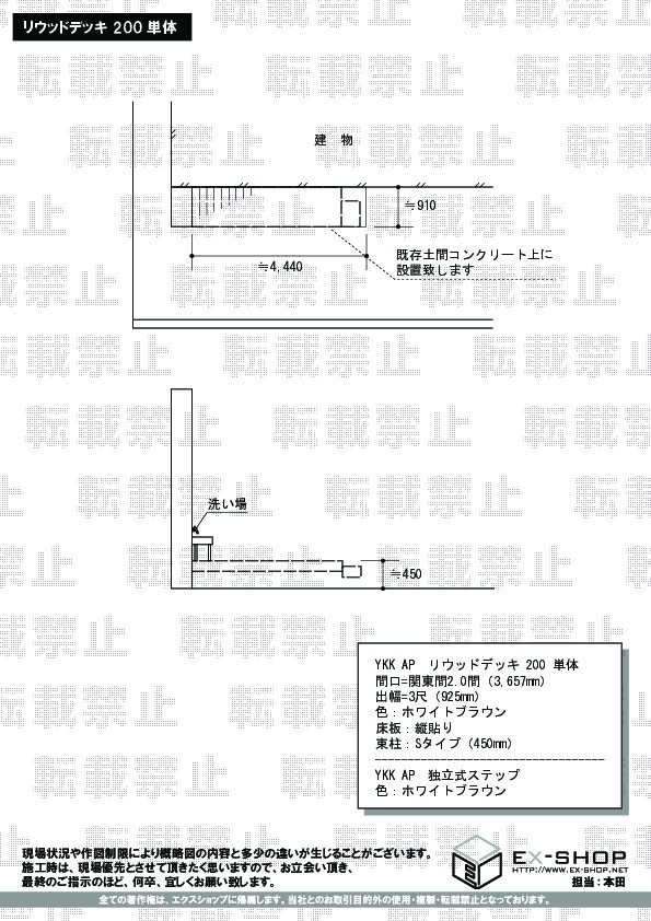 | サイズ | 間口 3,657mm 出幅 925mm |