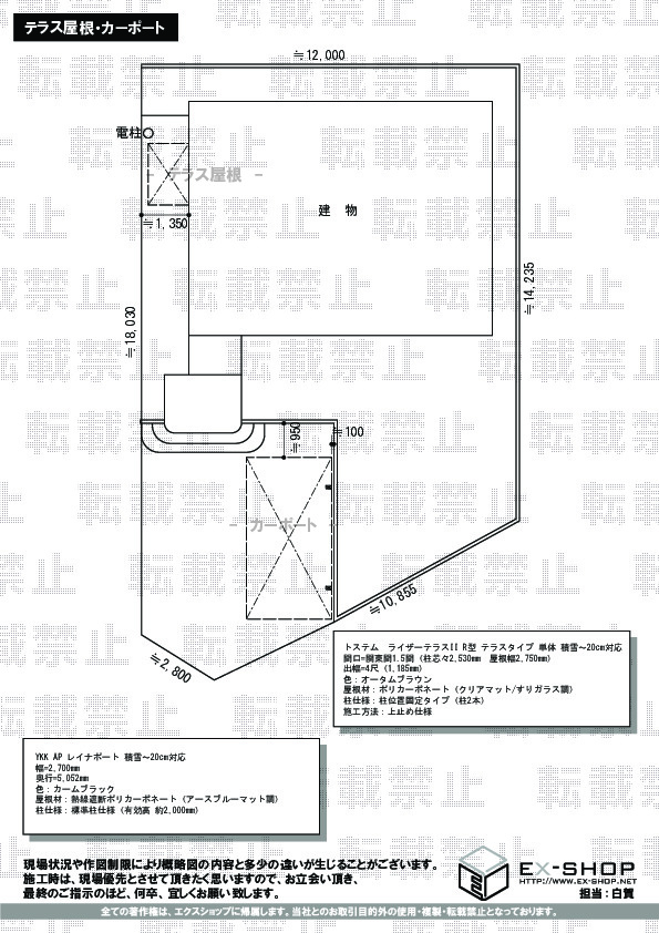 | サイズ | 屋根幅 2,750mm 出幅 1,185mm |