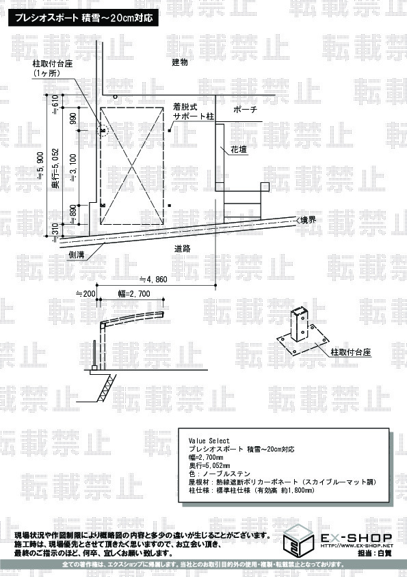 | 屋根高等 | 標準柱仕様(有効高 約1,800mm) |