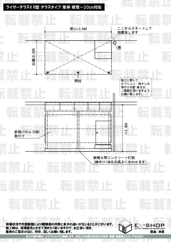サイズ | 屋根幅 3,660mm 出幅 2,685mm |