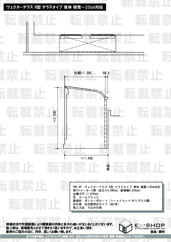 サイズ | 間口 4,030mm 出幅 5尺(1,470)mm |