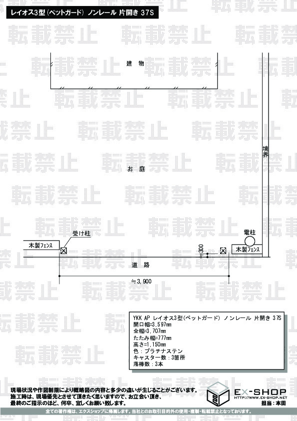 伸縮ゲート レイオス 3型 ペットガードタイプ 片開き(垂直パンタ式形材ゲート)