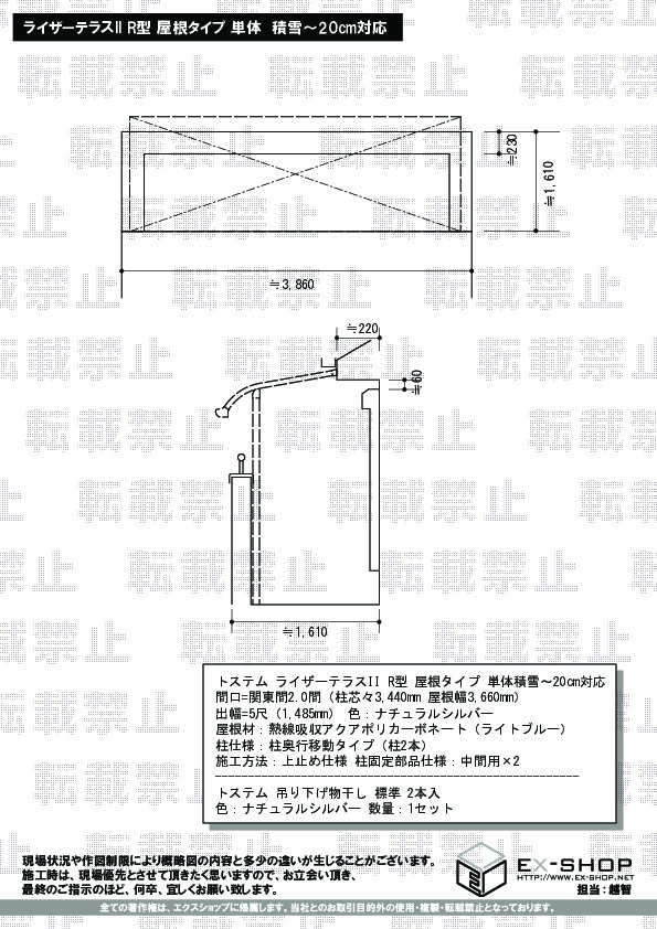 サイズ | 屋根幅 3,660mm 出幅 1,485mm |