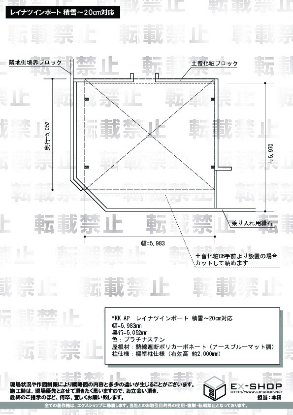 屋根高等 | 標準柱仕様(有効高 約2,000mm) |